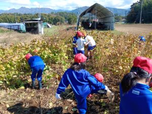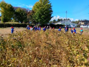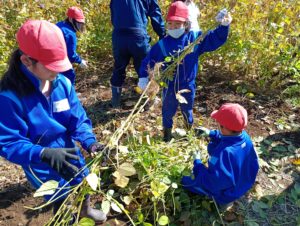 3年生が育ててきた大豆の収穫作業を行いました。