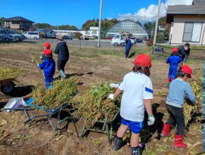 秋空の下で、一生懸命はたらく3年生。