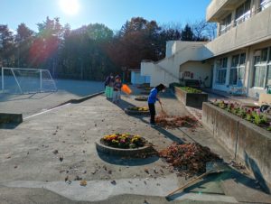 子ども達も一生懸命、落ち葉を集めてくれています。