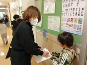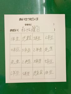 児童会の活動「あいさつビンゴ」が行われました。