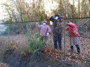 寒さに負けず,フェンスにからまったツル切りも!
