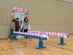 最後に「くす玉」を割って、6年生を贈る会は終了。