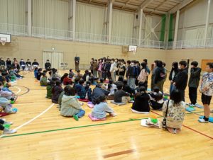 ゲームの後は、再び対面。6年生への呼びかけと「ありがとうの花」の歌をプレゼントしました。