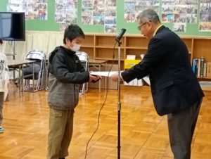 賞状伝達。今年度も多くの児童が様々な賞を受賞しました。