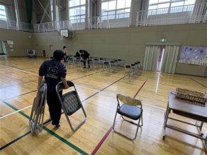 50分ほどの作業でしたが、体育館が「卒業式の会場」に変わりました。