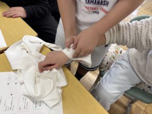実際の道具を用いて考えたり、試したりする「実践」を交えた授業でした。