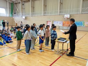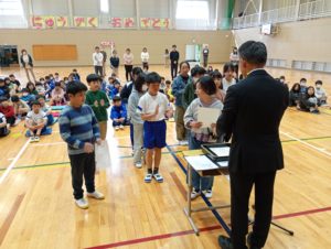 各学年の会長、副会長に校長先生から任命証が手渡されました。
